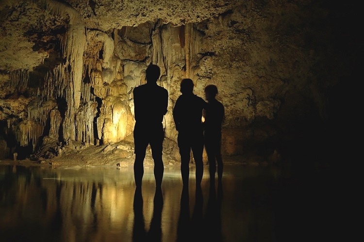 Spini subțiri de calcar ies din pereți și amblipigi (Paraphrynus sp.) speriați se pitesc după ei din calea luminii noastre. Arată fioros așa plați, cu picioare spinoase și mers de crab, dar sînt niște arahnide complet inofensive. Pești mici și orbi, care n-au mai văzut lumina zilei de mult prea multe generații, pipăie prin iazurile clare și țîșnesc speriați de uriașii veniți să le tulbure lumea. Am traversat cîteva bazine adînci pînă la genunchi, dar de aici înainte trebuie să înotăm prin peștera inundată. Apa rece îmi taie respirația, iar pămîntul care-mi dispare brusc de sub picioare mă lasă cu o senzație ciudată de alarmă. Plutind în cerneală fără să ating fundul, știu într-un mod visceral că nu am ce căuta în apă sub pămînt. Nu știu ce se află sub mine. E un loc atît de străin firii noastre încît îl resping fără să mă pot abține. Înțeleg totodată sensul atîtor inițieri în peșteri și subterane. Mintea nu are de ce să ți se agațe cînd ochii nu mai văd nimic, cînd urechile îți țiuie de liniște și fără nici un reper, nu mai știi care e susul și care e josul, dacă ești mare sau mic. Nu există posibilitatea nici unei comparații în această suspensie glacială și oarbă.