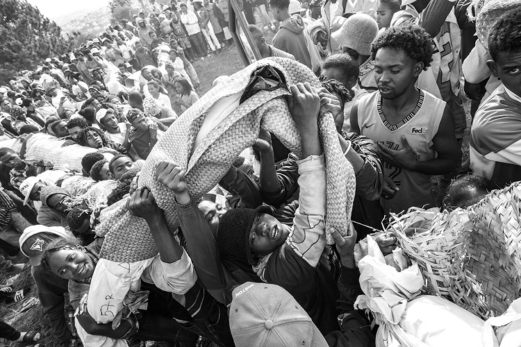 Nu era prima mea famadihana. Știam la ce să mă aștept după ce cu cîteva zile înainte am dat peste o procesiune dansantă în cartierul Ambohidroa din Antananarivo. Eram într-o mașină care mergea spre un complex de temple chinezești situat la aproximativ cincizeci de kilometri în afara Tanei (cum este denumit adesea Antananarivo), cînd am auzit bătăile tobelor pe o alee îngustă în pantă și am zărit o mulțime de tineri dansînd cu bucuria dezlănțuită a unei înmormîntări jazz din New Orleans, o asemănare accentuată de culoarea pielii. I-am spus lui Jacky, șoferul și prietenul meu malgaș, că trebuie neapărat să cobor și am alergat prin mulțime pentru a fotografia și a afla informații despre desfășurarea ulterioară a evenimentelor.