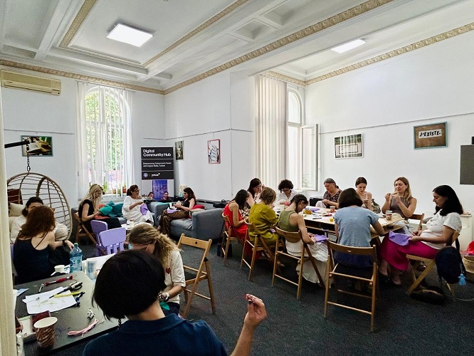 „În aproape toate proiectele pe care le derulez sînt înconjurată de femei. Femei aflate în această perioadă a vieții, 30-40 de ani, care jonglează foarte mult cu toate rolurile, cu toate responsabilitățile, femei profesioniste, dar care ajung în momente dese de epuizare și lucrul acestea începe să se simtă. Regăsesc în discuțiile pe care le am cu prietenele și cu colaboratoarele această întrebare: ce facem anul viitor? Rămînem în domeniu, schimbăm domeniul? Ce putem face mai mult pentru cei din jur? Cred că nu poți să faci foarte mult pentru cei din jur dacă nu faci pentru tine”, e de părere coordonatoarea proiectului Women Holding Women, Valentina Bâcu, manager cultural la Seneca AntiCafe și educatoare muzeală. Gîndul cu care a pornit a fost acela de blîndețe, de a avea grijă de tine mai întîi pentru a putea face bine în jur, de a prilejui întîlniri de reconectare cu partea creativă, pentru femeile care nu au timp să-și acorde această blîndețe. Femei care îndeplinesc simultan numeroase roluri și responsabilități, uneori în defavoarea propriei sănătăți, și pentru care arta poate deveni un sprijin în depășirea momentelor dificile din viață.