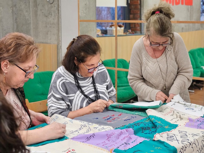 Instalația Petic Poetic, realizată în urma atelierului facilitat de Marcia Marin, a cusut versuri pe petice textile, fiecare adăugînd o nouă emoție, o nouă voce în povestea colectivă a femeilor participante, între care și senioarele de la Centrul Comunitar Zi de BINE. Valentina Bâcu își amintește o afirmație a uneia dintre senioare: „A spus că merge la centru doar ca să se întîlnească cu participantele, iar gîndul acesta, că va fi acolo în fiecare zi, o face să aibă grijă de cum arată și cu ce se îmbracă. Merge pentru că are nevoie de acele două ore în care să rîdă, pentru că în familia ei nu se mai rîde de mult”. Iar doamna respectivă spunea asta fără tristețe, ca o constatare a faptului că lucrurile se transformă foarte mult în dinamica unei familii, în timp.