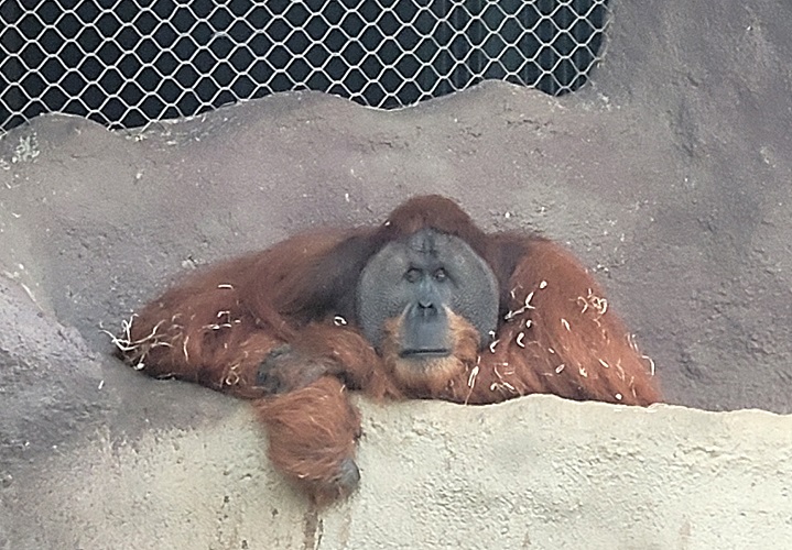 Ca și altădată, maimuțele, mai ales cele mari, mi-au dat serios de gîndit prin cam grotesca lor asemănare cu noi. Nu doar la înfățișarea propriu-zisă, ci și la gesturi. E greu să te abții a le compara chiar cu indivizi cunoscuți, așa cum făcea Luciane, personajul feminin al lui Goethe din Afinitățile elective, pe cînd privea un album cu maimuțe. În locul unde mă uitam eu, o gorilă aduna cu sîrg crengi cu frunze verzi pe care și le punea de jur împrejurul umerilor. Nu înțelegea nimeni care putea fi ideea sau rezultatul acestei activități. Asta pînă cînd, la un moment dat, maimuța le-a lăsat brusc să cadă pe jos, parcă uitînd pur și simplu de ele. Dar nu gorilele mi-au făcut cea mai puternică impresie, nici chiar cea mare, cu părul de la urechi ușor încărunțit. Cu mult mai teribil, printr-un soi de caricaturizare involuntară a unui gen de om cunoscut (evident, fără vreo vină din partea bietului animal), mi s-a părut urangutanul cel cu blană portocalie. Poate dacă aș fi fost pus în situația să aleg, aș fi preferat mai degrabă să împart cușca cu leul.