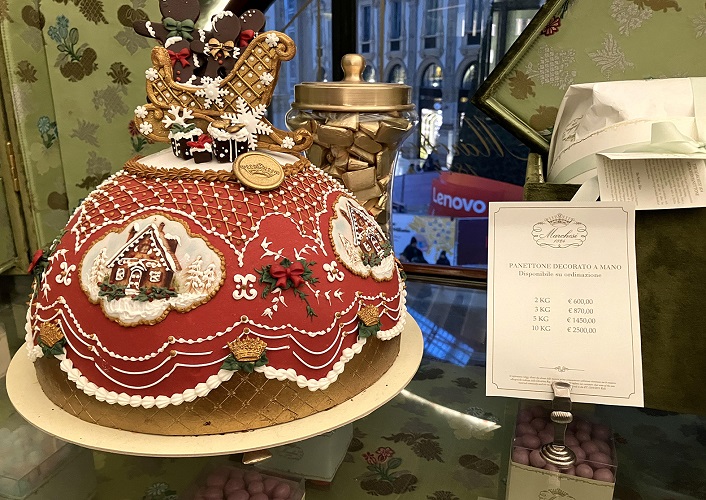 Dar Milano este, să nu uităm, capitala modei europene. Mai mult decît Parisul, Viena sau Londra. Aș spune că faimoasele galerii comerciale de lîngă Dom sînt numai o vitrină, o fațadă a ceea ce poți găsi ceva mai încolo de ele. Noi am intrat curioși prin ceea ce părea a fi un fel de poartă a unui hotel de lux (Portrait) și am ajuns la un mic patinoar cochet, aflat într-o curte interioară. Era înconjurat de boutique-uri transparente ale celebrei companii Ferragamo. O lume feerică decorată pentru Crăciun, ascunsă între clădirile hotelului. Ieșind pe altă poartă, printre alte două aripi ale hotelului, am nimerit, ca Alice în Țara Minunilor, într-un cartier fermecător, cu străzi destul de înguste pline de mici magazine cu nume mari: Fendi, Louis Vuitton, Longchamp, Ralph Lauren, Michael Kors, Chopard, Chanel, Giorgio Armani, Omega, Hublot, Gucci, Hogan, Prada, Giuseppe Zanotti, Moncler, Dolce&Gabbana, Bulgari, Boss, Cartier, Hermès, Falconeri, Fulda, Emporio Armani, Versace, Zegna, Valentino – și lista ar putea continua cu multe altele. Un paradis al shopping-ului scump. Acolo nu-ți mai trebuia altceva decît bani. Din loc în loc mai era și cîte o cofetărie sau cafenea de lux, la care puteai bea un ceai sau o cafea în picioare, la un preț normal. Dacă te așezai la masă, prețul se schimba radical. Și erau mulți cei care se înghesuiau să prindă un loc lîngă mesele înalte, unde se stătea în picioare și nu era chelner. Erau mulți turiști curioși și cu banii măsurați. Într-o vitrină am văzut un panettone (mai pe românește, cozonac) colorat. Pe etichetă scria că e decorat manual. Două kilograme costau 600 de euro. Un cadou de Crăciun.
